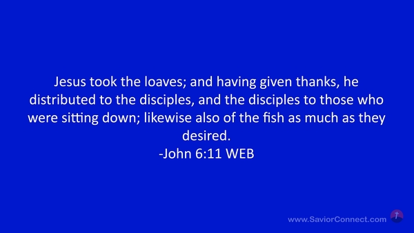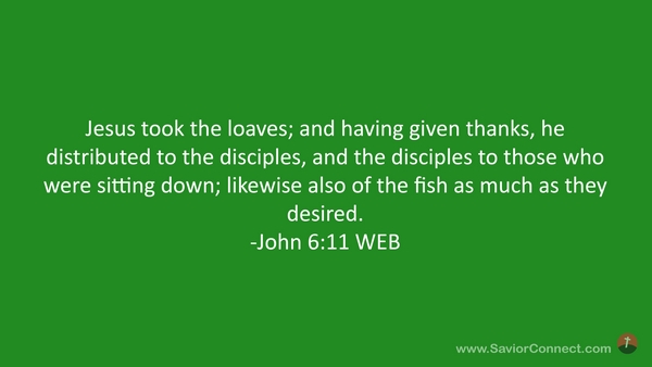 Jesus took the loaves; and having given thanks, he distributed to the disciples, and the disciples to those who were sitting down; likewise also of the fish as much as they desired. -John 6:11 WEB