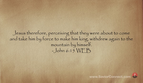 Jesus therefore, perceiving that they were about to come and take him by force to make him king, withdrew again to the mountain by himself. -John 6:15 WEB