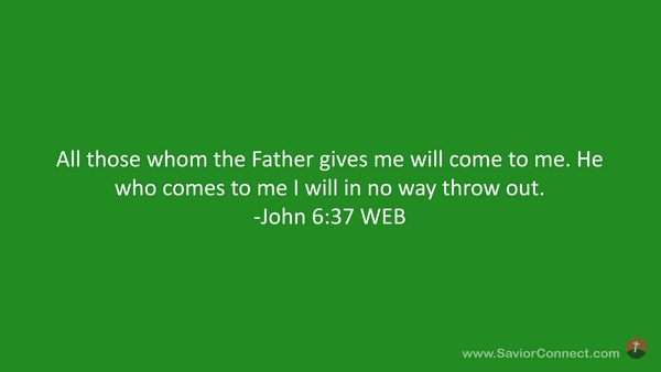 All those whom the Father gives me will come to me. He who comes to me I will in no way throw out. -John 6:37 WEB