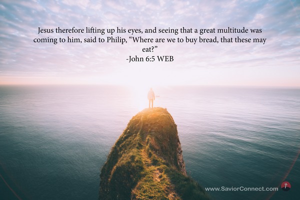 Jesus therefore lifting up his eyes, and seeing that a great multitude was coming to him, said to Philip, “Where are we to buy bread, that these may eat?” -John 6:5 WEB