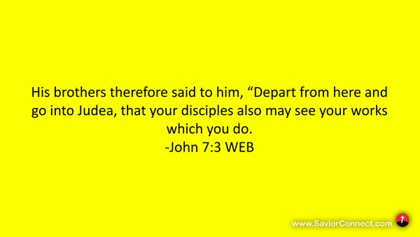 His brothers therefore said to him, “Depart from here and go into Judea, that your disciples also may see your works which you do. -John 7:3 WEB