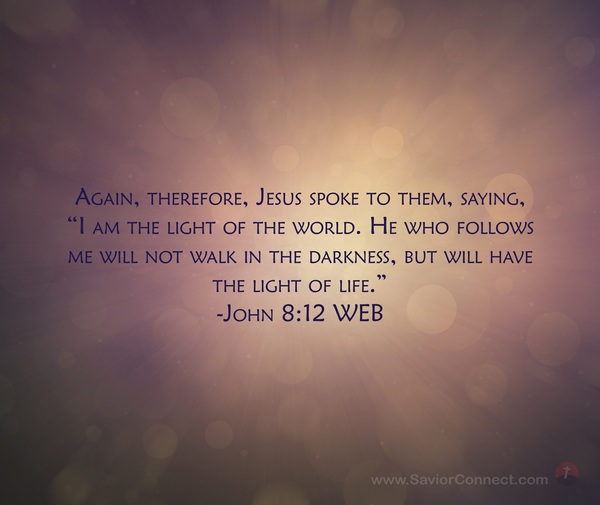Again, therefore, Jesus spoke to them, saying, “I am the light of the world. He who follows me will not walk in the darkness, but will have the light of life.” -John 8:12 WEB
