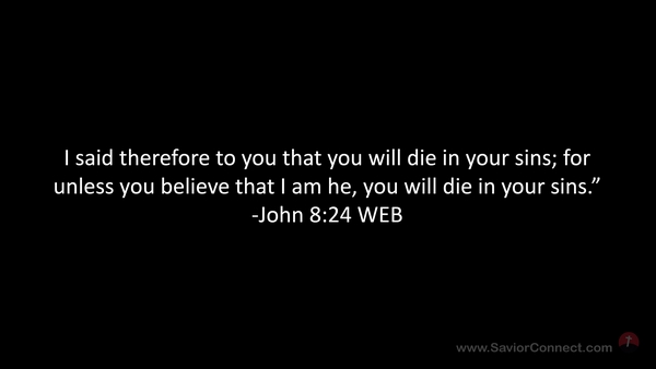 I said therefore to you that you will die in your sins; for unless you believe that I am he, you will die in your sins.” -John 8:24 WEB