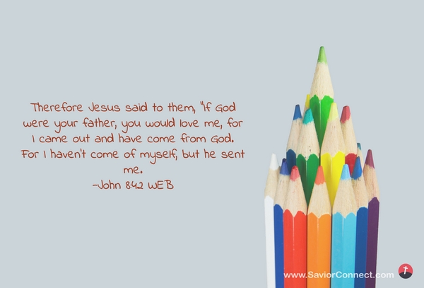 Therefore Jesus said to them, “If God were your father, you would love me, for I came out and have come from God. For I haven’t come of myself, but he sent me. -John 8:42 WEB