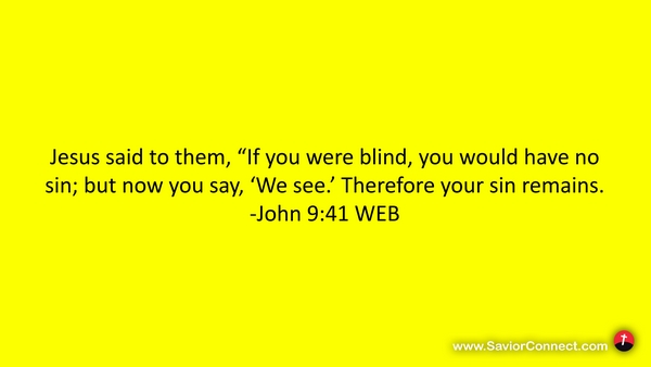Jesus said to them, “If you were blind, you would have no sin; but now you say, 'We see.’ Therefore your sin remains. -John 9:41 WEB