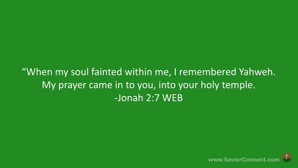 “When my soul fainted within me, I remembered Yahweh. My prayer came in to you, into your holy temple. -Jonah 2:7 WEB