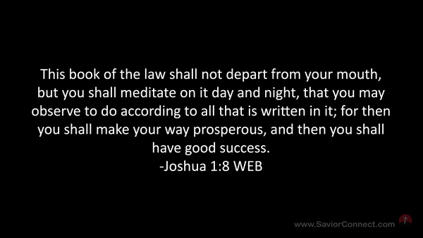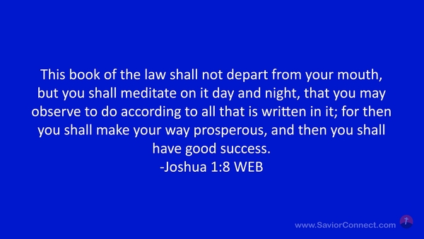 This book of the law shall not depart from your mouth, but you shall meditate on it day and night, that you may observe to do according to all that is written in it; for then you shall make your way prosperous, and then you shall have good success. -Joshua 1:8 WEB