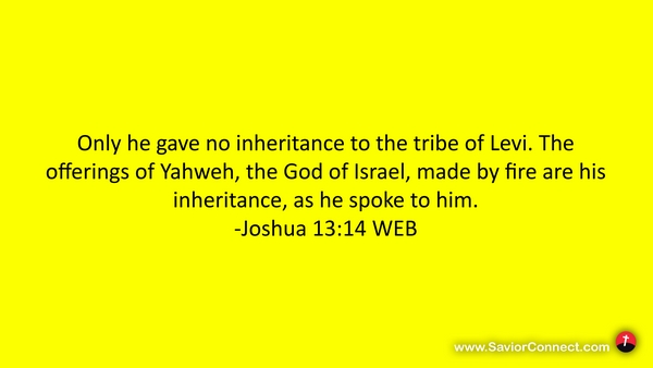Only he gave no inheritance to the tribe of Levi. The offerings of Yahweh, the God of Israel, made by fire are his inheritance, as he spoke to him. -Joshua 13:14 WEB