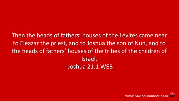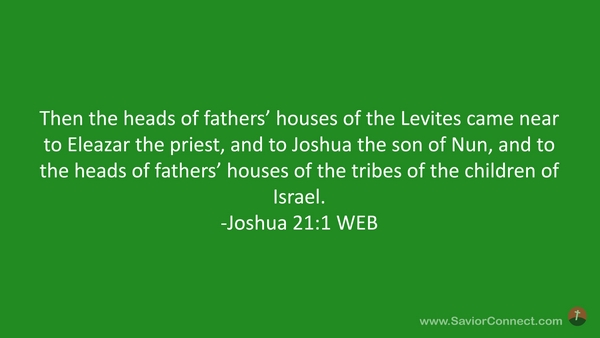 Then the heads of fathers’ houses of the Levites came near to Eleazar the priest, and to Joshua the son of Nun, and to the heads of fathers’ houses of the tribes of the children of Israel. -Joshua 21:1 WEB