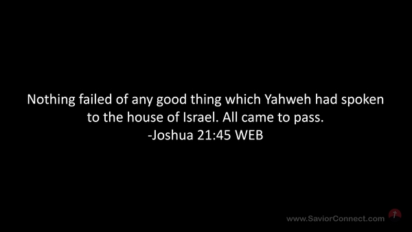 Nothing failed of any good thing which Yahweh had spoken to the house of Israel. All came to pass. -Joshua 21:45 WEB