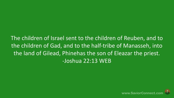 The children of Israel sent to the children of Reuben, and to the children of Gad, and to the half-tribe of Manasseh, into the land of Gilead, Phinehas the son of Eleazar the priest. -Joshua 22:13 WEB