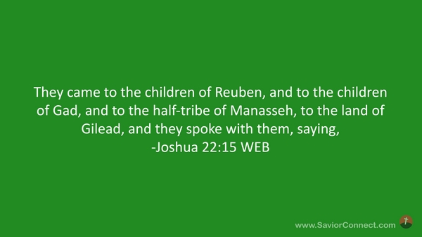 They came to the children of Reuben, and to the children of Gad, and to the half-tribe of Manasseh, to the land of Gilead, and they spoke with them, saying, -Joshua 22:15 WEB