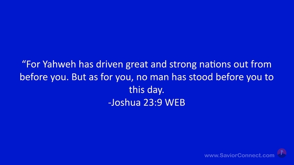 “For Yahweh has driven great and strong nations out from before you. But as for you, no man has stood before you to this day. -Joshua 23:9 WEB