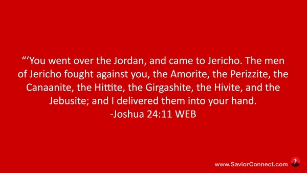 “'You went over the Jordan, and came to Jericho. The men of Jericho fought against you, the Amorite, the Perizzite, the Canaanite, the Hittite, the Girgashite, the Hivite, and the Jebusite; and I delivered them into your hand. -Joshua 24:11 WEB