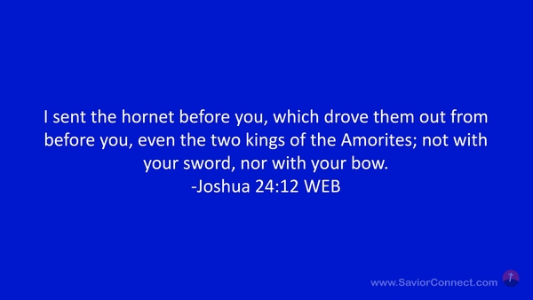 I sent the hornet before you, which drove them out from before you, even the two kings of the Amorites; not with your sword, nor with your bow. -Joshua 24:12 WEB