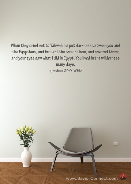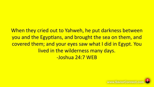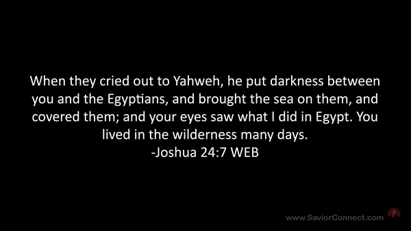 When they cried out to Yahweh, he put darkness between you and the Egyptians, and brought the sea on them, and covered them; and your eyes saw what I did in Egypt. You lived in the wilderness many days. -Joshua 24:7 WEB