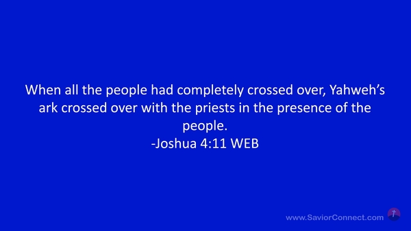 When all the people had completely crossed over, Yahweh’s ark crossed over with the priests in the presence of the people. -Joshua 4:11 WEB
