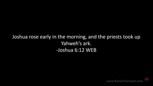 Joshua rose early in the morning, and the priests took up Yahweh’s ark. -Joshua 6:12 WEB