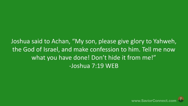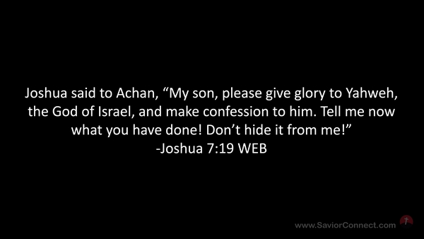 Joshua said to Achan, “My son, please give glory to Yahweh, the God of Israel, and make confession to him. Tell me now what you have done! Don’t hide it from me!” -Joshua 7:19 WEB