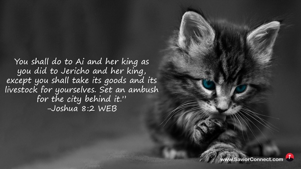 You shall do to Ai and her king as you did to Jericho and her king, except you shall take its goods and its livestock for yourselves. Set an ambush for the city behind it.” -Joshua 8:2 WEB