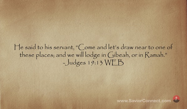 He said to his servant, “Come and let’s draw near to one of these places; and we will lodge in Gibeah, or in Ramah.” -Judges 19:13 WEB