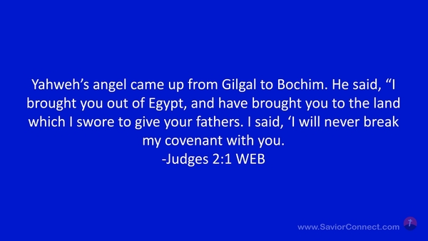 Yahweh’s angel came up from Gilgal to Bochim. He said, “I brought you out of Egypt, and have brought you to the land which I swore to give your fathers. I said, 'I will never break my covenant with you. -Judges 2:1 WEB