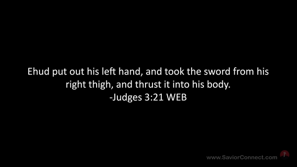 Ehud put out his left hand, and took the sword from his right thigh, and thrust it into his body. -Judges 3:21 WEB