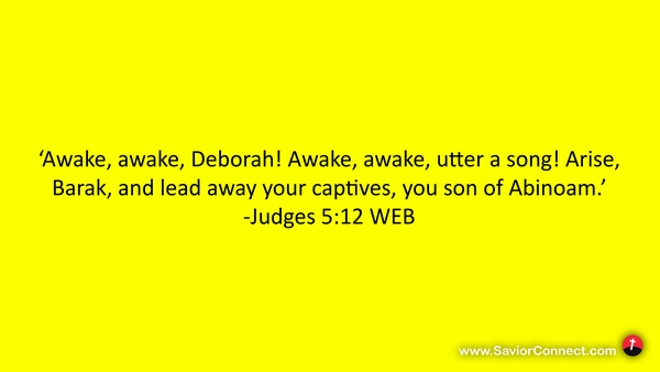 'Awake, awake, Deborah! Awake, awake, utter a song! Arise, Barak, and lead away your captives, you son of Abinoam.’ -Judges 5:12 WEB