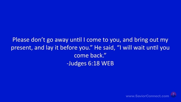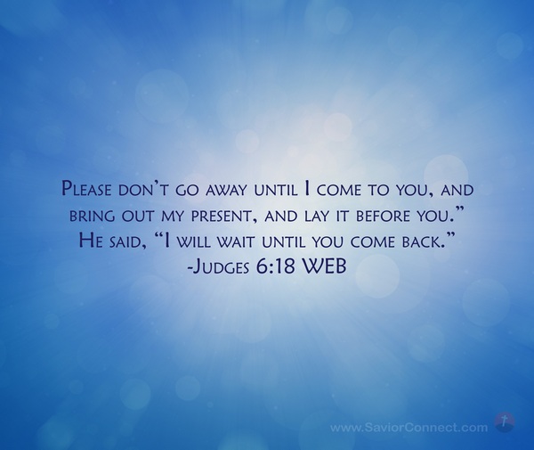 Please don’t go away until I come to you, and bring out my present, and lay it before you.” He said, “I will wait until you come back.” -Judges 6:18 WEB