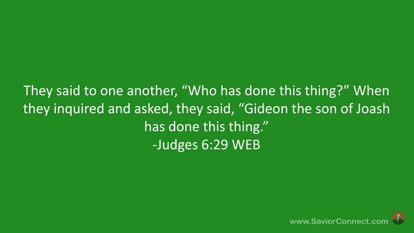 They said to one another, “Who has done this thing?” When they inquired and asked, they said, “Gideon the son of Joash has done this thing.” -Judges 6:29 WEB