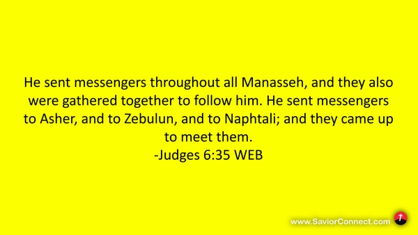 He sent messengers throughout all Manasseh, and they also were gathered together to follow him. He sent messengers to Asher, and to Zebulun, and to Naphtali; and they came up to meet them. -Judges 6:35 WEB
