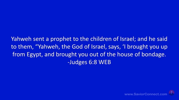 Yahweh sent a prophet to the children of Israel; and he said to them, “Yahweh, the God of Israel, says, 'I brought you up from Egypt, and brought you out of the house of bondage. -Judges 6:8 WEB