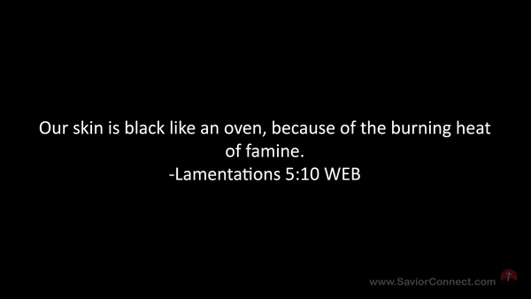Our skin is black like an oven, because of the burning heat of famine. -Lamentations 5:10 WEB