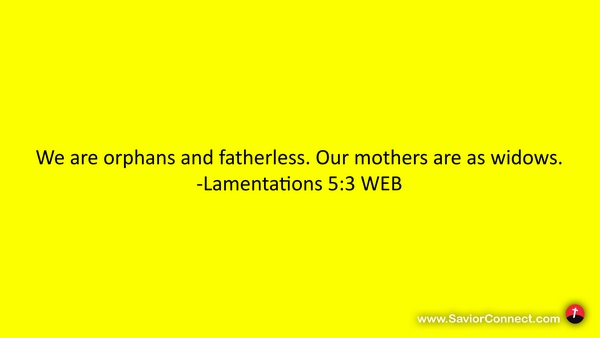 We are orphans and fatherless. Our mothers are as widows. -Lamentations 5:3 WEB