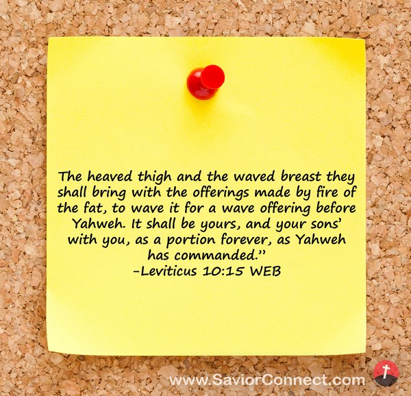 The heaved thigh and the waved breast they shall bring with the offerings made by fire of the fat, to wave it for a wave offering before Yahweh. It shall be yours, and your sons’ with you, as a portion forever, as Yahweh has commanded.” -Leviticus 10:15 WEB