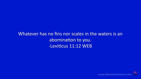 Whatever has no fins nor scales in the waters is an abomination to you. -Leviticus 11:12 WEB