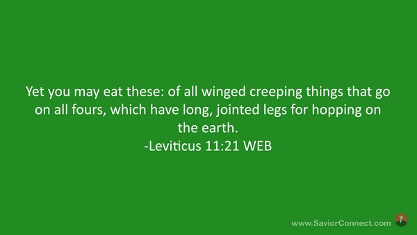 Yet you may eat these: of all winged creeping things that go on all fours, which have long, jointed legs for hopping on the earth. -Leviticus 11:21 WEB