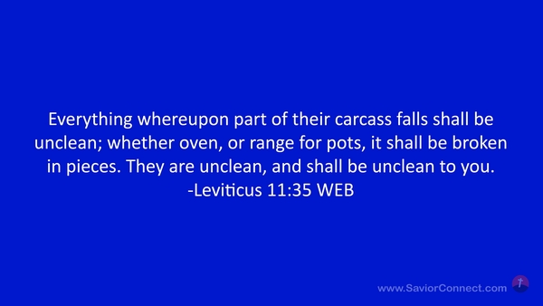 Everything whereupon part of their carcass falls shall be unclean; whether oven, or range for pots, it shall be broken in pieces. They are unclean, and shall be unclean to you. -Leviticus 11:35 WEB