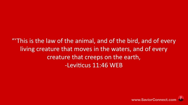 “'This is the law of the animal, and of the bird, and of every living creature that moves in the waters, and of every creature that creeps on the earth, -Leviticus 11:46 WEB