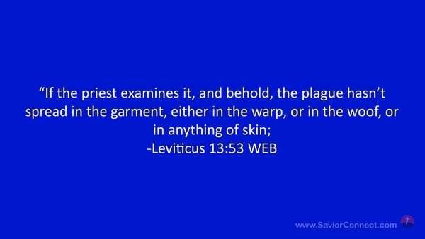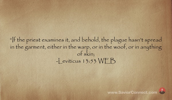 “If the priest examines it, and behold, the plague hasn’t spread in the garment, either in the warp, or in the woof, or in anything of skin; -Leviticus 13:53 WEB