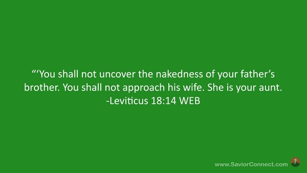 “'You shall not uncover the nakedness of your father’s brother. You shall not approach his wife. She is your aunt. -Leviticus 18:14 WEB