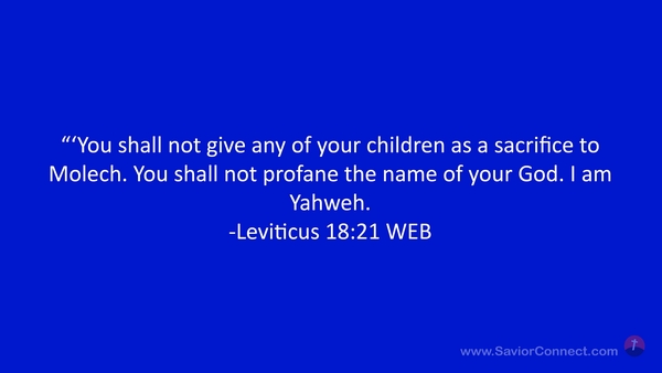 “'You shall not give any of your children as a sacrifice to Molech. You shall not profane the name of your God. I am Yahweh. -Leviticus 18:21 WEB