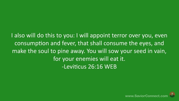 I also will do this to you: I will appoint terror over you, even consumption and fever, that shall consume the eyes, and make the soul to pine away. You will sow your seed in vain, for your enemies will eat it. -Leviticus 26:16 WEB