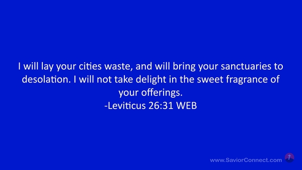 I will lay your cities waste, and will bring your sanctuaries to desolation. I will not take delight in the sweet fragrance of your offerings. -Leviticus 26:31 WEB