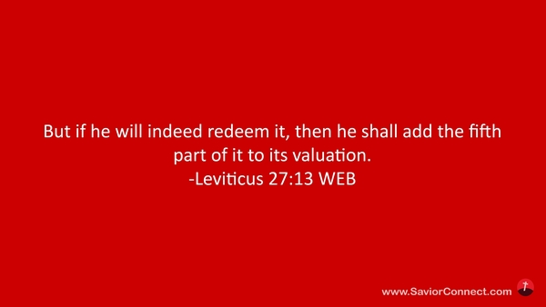 But if he will indeed redeem it, then he shall add the fifth part of it to its valuation. -Leviticus 27:13 WEB