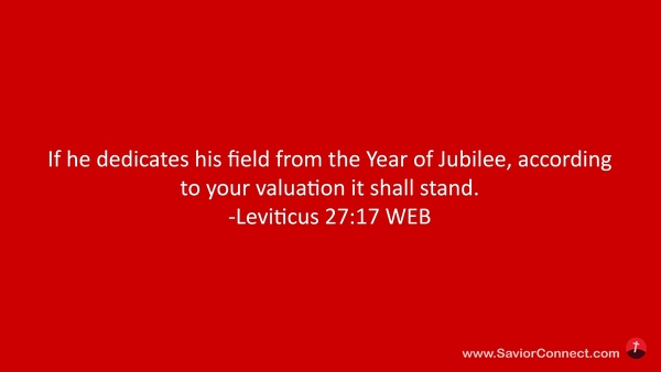 If he dedicates his field from the Year of Jubilee, according to your valuation it shall stand. -Leviticus 27:17 WEB