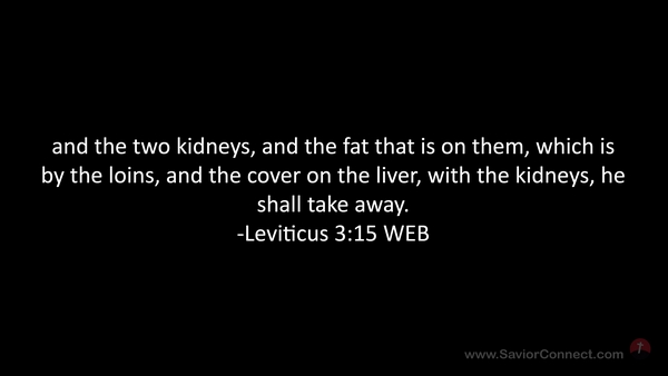and the two kidneys, and the fat that is on them, which is by the loins, and the cover on the liver, with the kidneys, he shall take away. -Leviticus 3:15 WEB
