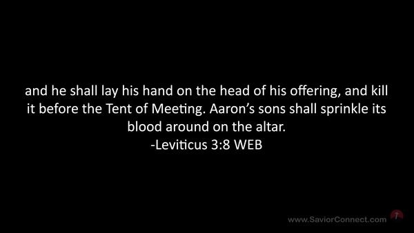 and he shall lay his hand on the head of his offering, and kill it before the Tent of Meeting. Aaron’s sons shall sprinkle its blood around on the altar. -Leviticus 3:8 WEB