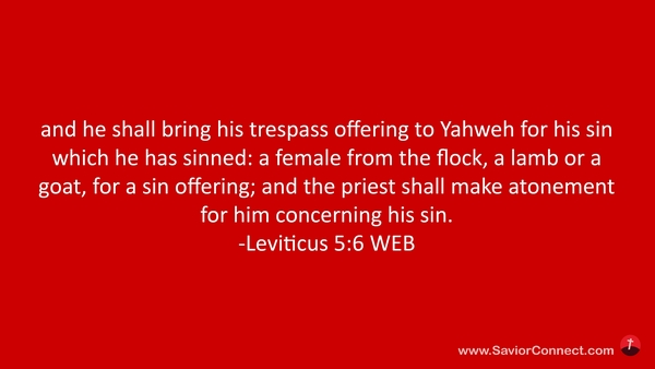 and he shall bring his trespass offering to Yahweh for his sin which he has sinned: a female from the flock, a lamb or a goat, for a sin offering; and the priest shall make atonement for him concerning his sin. -Leviticus 5:6 WEB