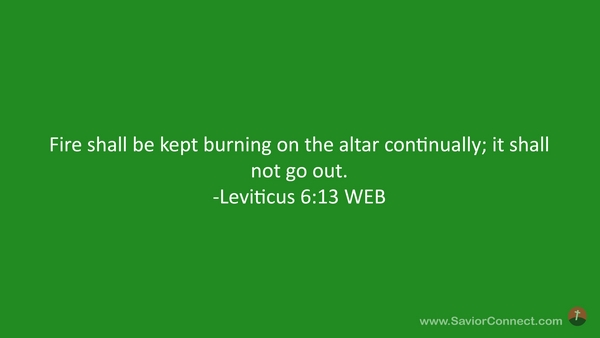 Fire shall be kept burning on the altar continually; it shall not go out. -Leviticus 6:13 WEB